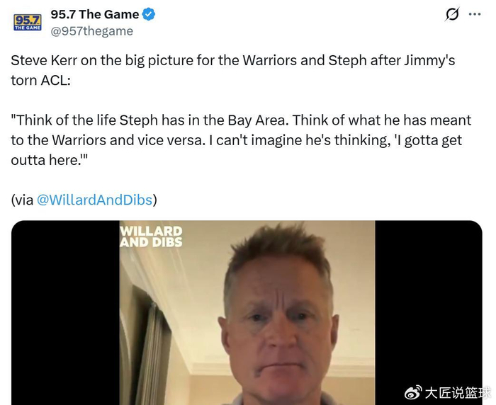 科尔直言:“想想库里在湾区的生活,想想他对勇士队的意义,反过来也是如此,所以我无法想象他在巴特勒受伤后会想着离开。”