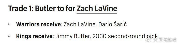 国王得到:巴特勒+2030年二轮签。