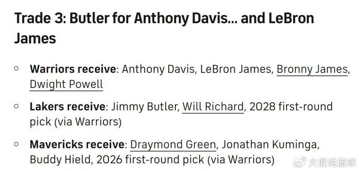 湖人得到:巴特勒+理查德+28年首轮;